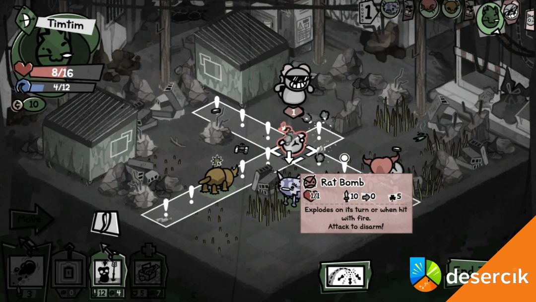 - Spawn Bomb – główny atak bossa. Radical Rat wyciąga bombę z pleców i rzuca na planszę, zwykle w pobliże twoich jednostek. Bomby eksplodują w krzyżowym wzorze (poziomo i pionowo), zadając ogromne obrażenia. Zazwyczaj rzuca dwie bomby pod rząd, czasem trzy – rzadsze, ale bardziej niebezpieczne.