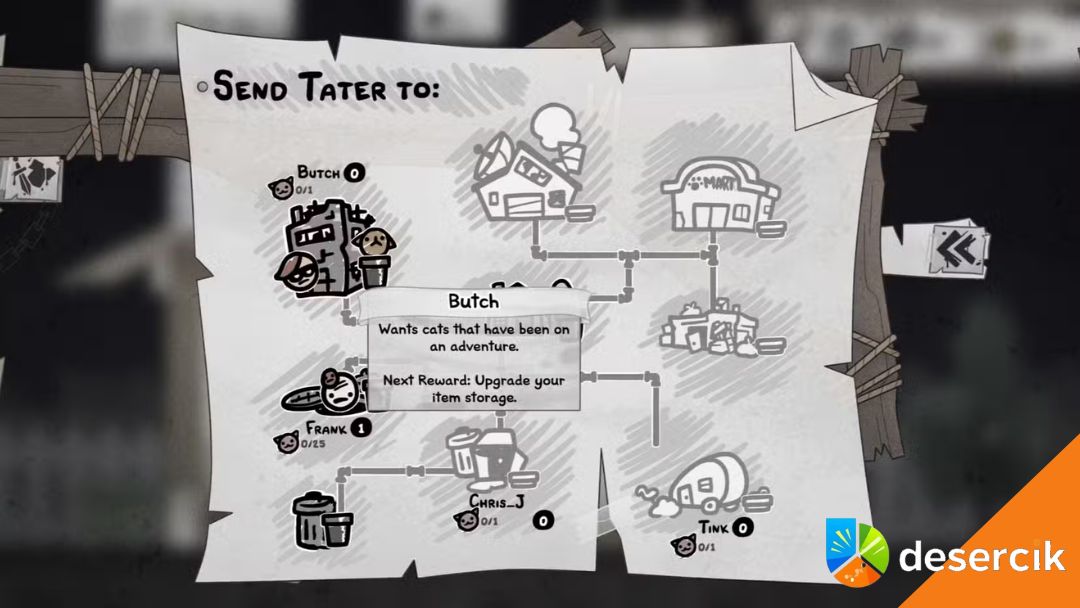 Po wysłaniu kota NPC zobaczysz krótką cutscenkę, a Twój kot przybliży Cię do odblokowania nagród tej postaci. Kontynuując wysyłanie kotów do różnych NPC, odblokujesz nowe ulepszenia, przedmioty i bonusy, które ułatwią Ci dalszą przygodę.