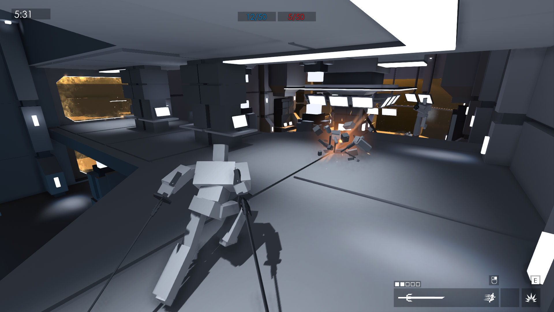 Jeśli chodzi o samą broń to w Minimum nie znajdziecie standardowych karabinków szturmowych czy pistoletów maszynowych. Tutaj każda broń jest zaprojektowana tak, aby była niepowtarzalna od wybuchowego karabina lodowego do oburęcznej katany (dziwne). Jak wspomniałem wcześniej, każda broń ma pięć poziomów ulepszeń, a sam sposób strzałów etc. zależy dodatkowo od rodzaju naszej postaci, także wiele czynników wpływa na jakość, wygląd i skuteczność posiadanego uzbrojenia.
