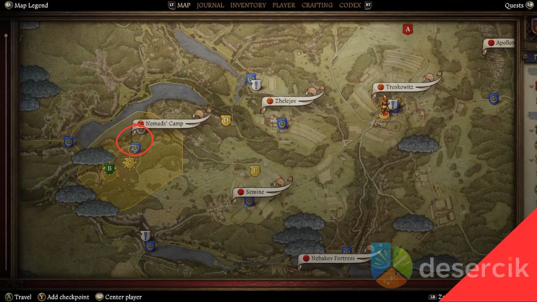 Oboz Kumanów ukryty jest w lesie na zachód od posiadłości Semina. Możesz go dostrzec po dymie z ogniska lub śladach na ścieżkach prowadzących w głąb lasu.