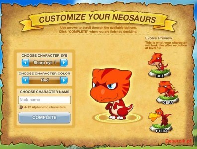 W przeglądarkowej grze MMORPG Neosaurs zaczynamy hodować własnego dinozaura i zdecydujemy czy chcemy aby ewoluował w przerażającego T-Rexa, potężnego Ceratopsa czy Pteradoktyla.