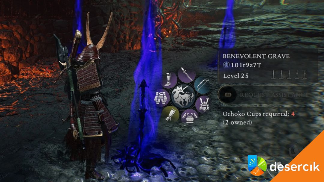 Gdy masz już zapas Kubków Ochoko, przychodzi czas na ich właściwe wykorzystanie. Służą one do aktywowania Dobroczynnych Grobów, oznaczonych na niebiesko. Najczęściej spotkasz je tuż przed arenami bossów, przy wejściach do Mrocznych Krain albo w miejscach, gdzie twórcy gry wyraźnie zakładają, że gracz może mieć problem. Po zaoferowaniu odpowiedniej liczby Kubków Ochoko przyzywasz przyjaznego NPC, który walczy u twojego boku.