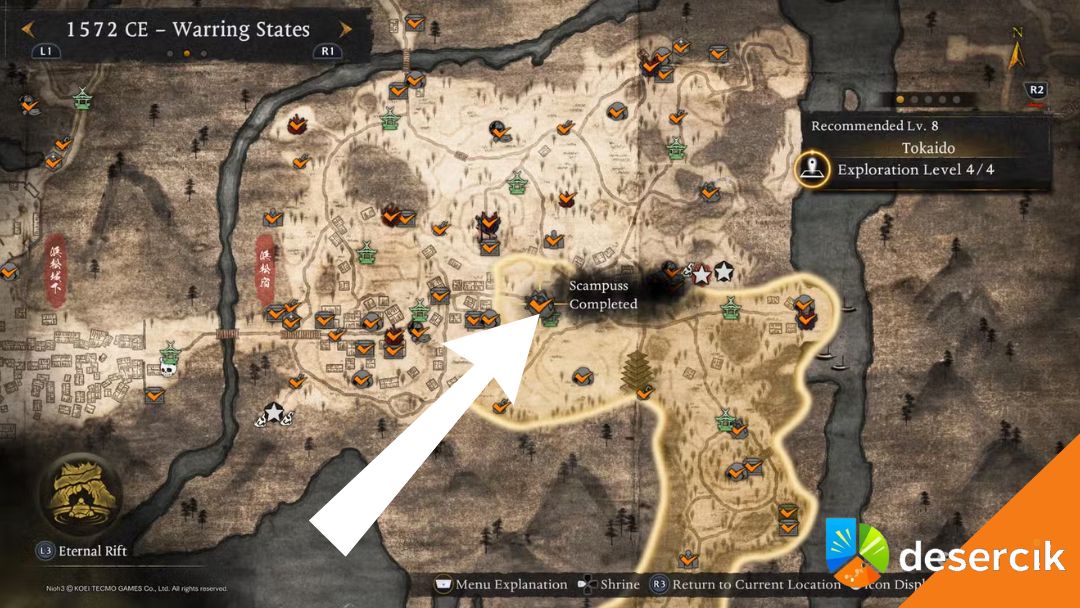 Kolejne dwa Scampussy znajdują się w regionie Tokaido, zalecanym na 8 poziom postaci. Pierwszy z nich czeka tuż obok Kapliczki Forest of Souls, niemal na środku regionu, więc trudno go przegapić, jeśli eksplorujesz mapę dokładnie.