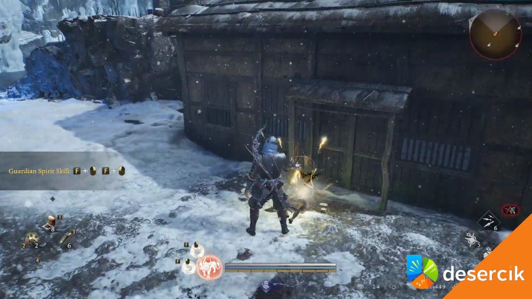 Kiedy trafisz na syreny walczące z bandytami, zerknij w lewo. Zobaczysz świątynię częściowo zatopioną w wodzie. Wskocz na dachówki i przedostań się na drugą stronę. Tam czeka Spirit Vein, który pozwoli Ci wspiąć się do Lesser Crucible w tym regionie.