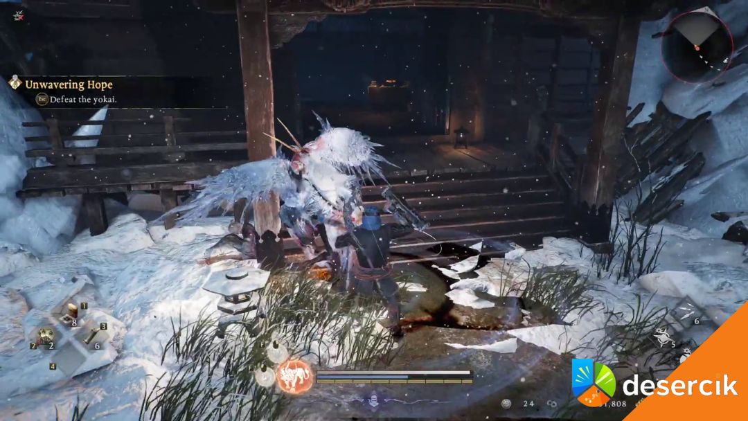 To nie jest najtrudniejszy yokai w grze, ale potrafi zaskoczyć, jeśli zlekceważysz jej ataki. Zachowaj dystans, pilnuj staminy i nie spamuj bezmyślnie ciosów. Po jej pokonaniu pojawia się duch mężczyzny i zaczyna się rozmowa.