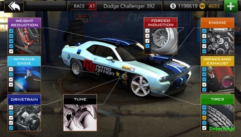 Wiele podobnych gier pozwala nam ulepszać swoje auto, dodawać części, elementy tuningowe, zmieniać kolory, czy dodawać bajeranckie grafy i w Nitro Nation Racing jest podobnie, choć tutaj możemy dosłownie pracować nad każdą częścią swojej maszyny.