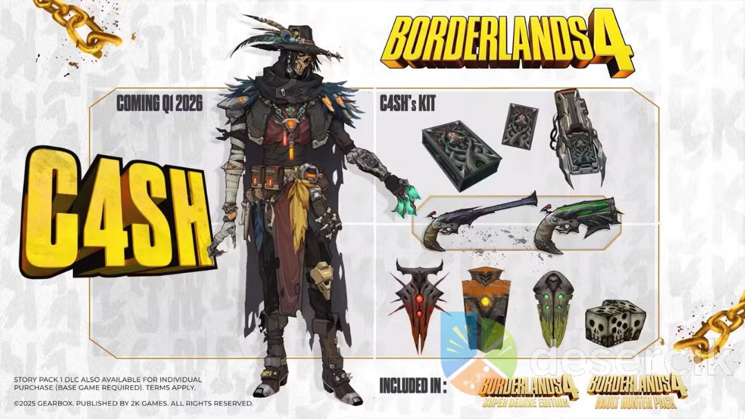 C4SH zadebiutuje w pierwszym kwartale 2026 roku, a jego prezentacja odbyła się na Tokyo Game Show, co tylko podgrzało hype wśród fanów. Co ciekawe, dostęp do niego otrzymają posiadacze Super Deluxe Edition albo specjalnego Vault Hunter Packa. Będzie też częścią pierwszego Story Packa – „Mad Ellie and the Vault of the Damned”, który przeniesie graczy do nowego regionu zwanego Kairos. Tam czekać będą świeże misje fabularne, zadania poboczne, nowe bronie, gadżety i oczywiście masa loot’u.