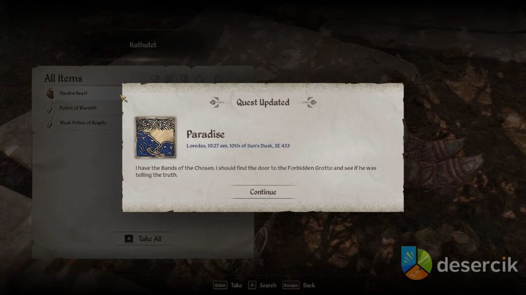 Do Zakazanej Groty trafisz w ramach przedostatniego etapu głównego questu Raj. Po otwarciu portalu do Raju Camorana przez Martina, gracz wkracza na unikalny obszar pełen niebezpieczeństw, zagadek i unikatowych lokacji.