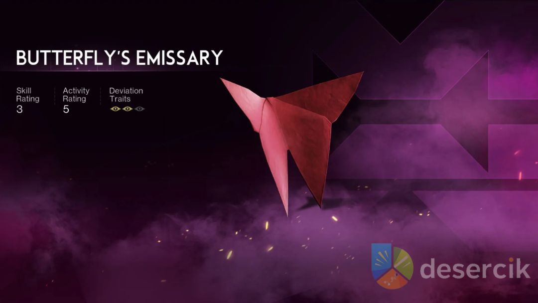 Butterfly鈥檚 Emissary mo偶e zbli偶a膰 si臋 do wrog贸w z dystansu i zadawa膰 masywne obra偶enia przy ataku, a jednocze艣nie u艂atwia Ci planowanie walki, poniewa偶 wiesz, kt贸re miejsca s膮 najbardziej wra偶liwe. To czyni go idealnym Deviantem do d艂ugich i wymagaj膮cych star膰, w kt贸rych ka偶dy punkt obra偶e艅 jest na wag臋 z艂ota.