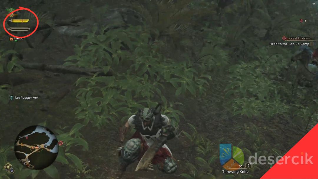 - Jeśli pasek zmienia się na żółty lub czerwony, oznacza to, że broń traci skuteczność i istnieje ryzyko odbicia ciosu od potwora. W tym momencie łowca powinien natychmiast użyć Whetstone, aby przywrócić pełną ostrość.