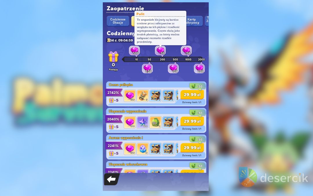 - Niewłaściwe użycie Palitu – wielu graczy wydaje go w sklepach na drobiazgi zamiast inwestować w rozwój VIP.