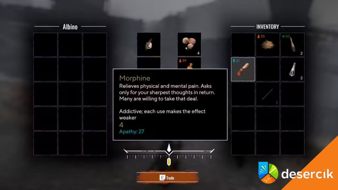 Czasem wysoki poziom apatii lub manii może być korzystny – np. morphine zwiększająca apatię przed rozmową da ci lepszą kontrolę nad manią, a wysoka mania pozwala szybko przemieszczać się po zakażonych dzielnicach.