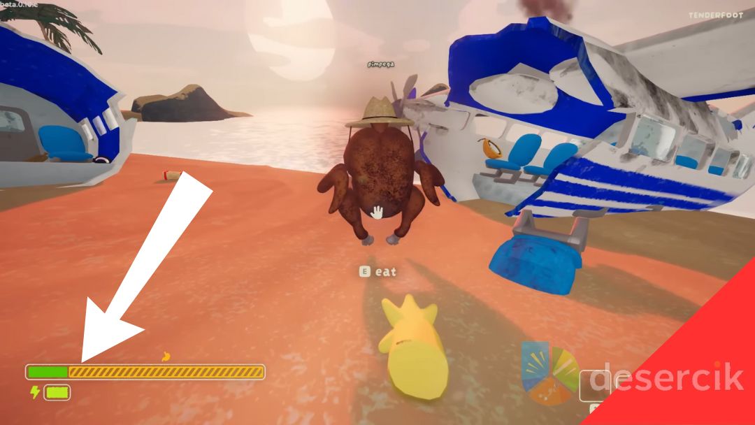 Żeby w ogóle pojawiła się możliwość zjedzenia innego gracza, twój wskaźnik głodu musi przejąć większość paska zdrowia. Gdy osiągnie mniej więcej 70%, postacie twoich kompanów zaczną dosłownie wyglądać jak smażony kurczak. Wtedy, jeśli podejdziesz blisko, na ekranie pojawi się przycisk – jego przytrzymanie pozwala ci „posilić się” przyjacielskim wspinaczem.