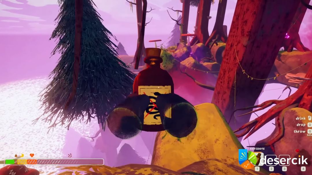 Unikajcie również Bombshrooms – wybuchają przy kontakcie i uwalniają zarodniki. Jeśli zostaniecie trafieni, natychmiast użyjcie Cure-All, Medicinal Root, Antidote lub First Aid Kit, aby przywrócić zdrowie.