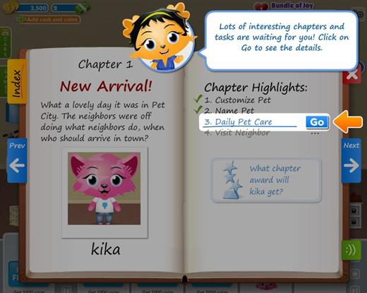 Co sprawia, że Pet City jest różne od innych podobnych gier, jak Pet Society, po pierwsze jest bardziej rozbudowana i łatwiejsza do zrozumienia. Mamy proste wprowadzenie, które zapisuje obecne nasze dokonania i pokazuje nasze przyszłe cele.