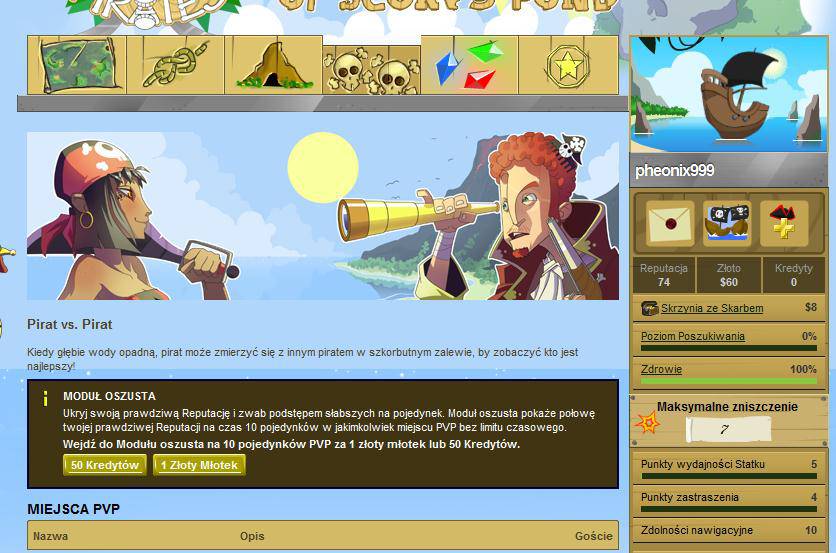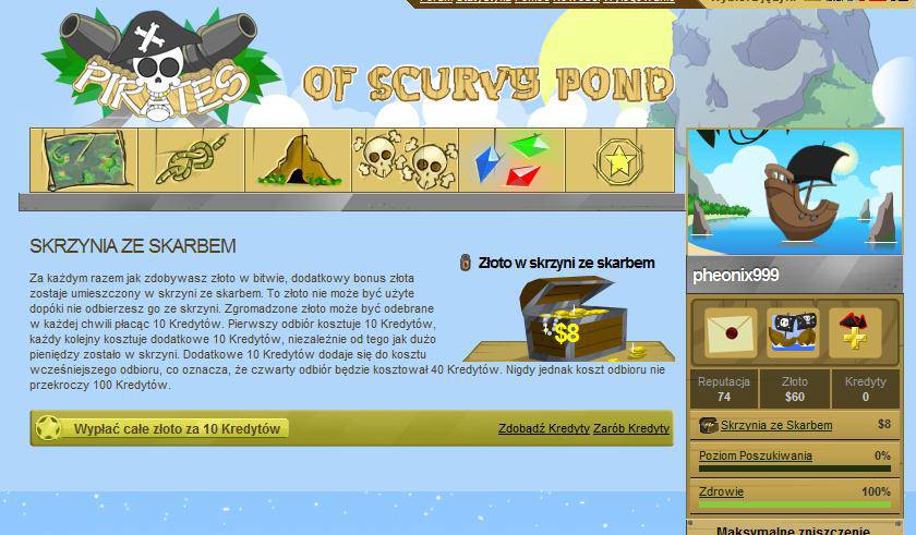 Podróżuj na morzu, prowadź beztroskie życie jako kapitan piratów. Zbierz silny zespół, ulepsz swój statek i stań naprzeciw nowym wyzwaniom. Ty jesteś szefem na swoim pokładzie. Jako kapitan własnego statku masz za zadanie podbijać wszelkie zakątki oceanu. Początkowo twój statek jest słaby i niegroźny. Za każde zwycięstwo otrzymuje złoto, za które możemy rozbudowywać swój statek i go ulepszać. Można także zakupić drewno czy kompas. Oczywiście musisz dysponować sprawną załogą.Wszystko to znajdziesz w grze przeglądarkowej Pirates of Scurvy Pond. Jednak nie musisz walczyć sam, możesz poprosić przyjaciół o pomoc. Jednak nie przesadzaj bo możesz trafić do więzienia dla piratów, a uszkodzenie statku też będzie kosztowne. Skupić się musisz na zdobyciu reputacji i złota siejąc strach wśród przeciwników. Dobrze należy dobrać w stoczni statek i miejsce do bitwy. Jeśli wygrasz zdobędziesz złoto, kup nowe części i zwiększ wydajność statku. Czasami coś się uszkodzi i wtedy statek zacznie odmawiać posłuszeństwa, dlatego należy szybko go naprawić i uodpornić.
