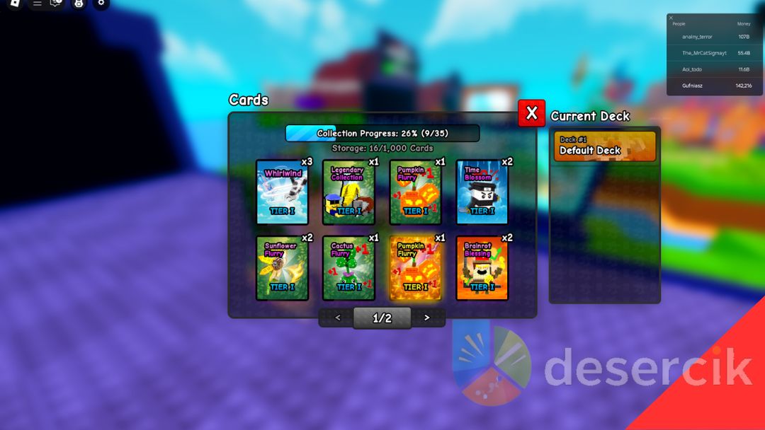 Aby aktywować zdobyte karty, trzeba udać się do Player Cards Viewer – znajduje się on po prawej stronie rampy brainrotów. Wystarczy przytrzymać przycisk E, by otworzyć interfejs kart. Następnie wybierz te, które chcesz włożyć do talii.