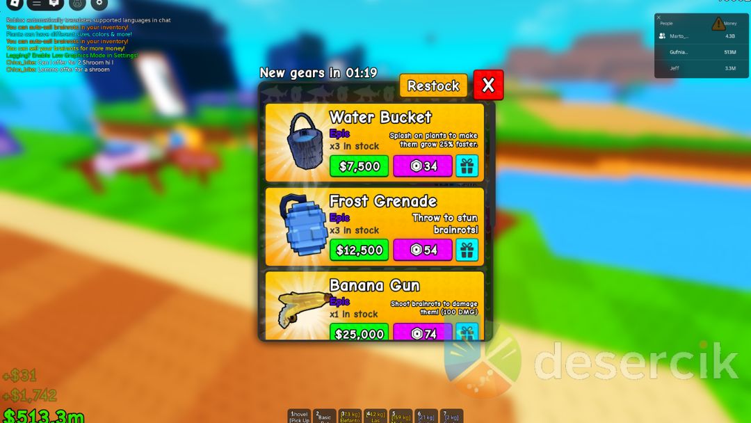 Sklep uzupełnia asortyment co 5 minut, a jeśli chcesz przyspieszyć proces, możesz ręcznie odnowić stany magazynowe, wydając 80 Robuxów. Oprócz tego część sprzętu możesz zdobyć dzięki kodom udostępnianym przed eventami w grze.