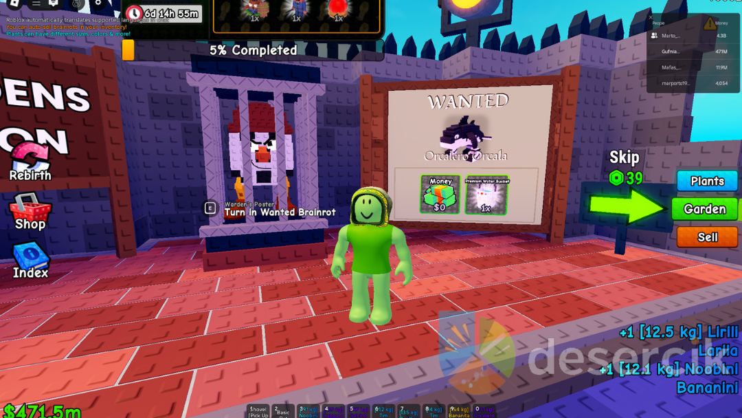 - Spójrz na baner „Wanted” – pokazuje, którego brainrota musisz uwięzić.
