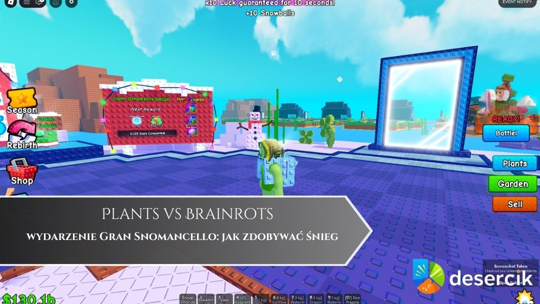 Śnieg zdobywasz, farmiąc Snowy Brainrots. Te śnieżne mutacje pojawiają się losowo, więc możesz je powtarzać, aż Twój ekwipunek będzie pełny. Dobrą strategią jest użycie Riot Potion, który zwiększa spawn brainrotów. Dodatkowo możesz czekać na event pogodowy PvB, który pozwala szybciej zebrać śnieg.