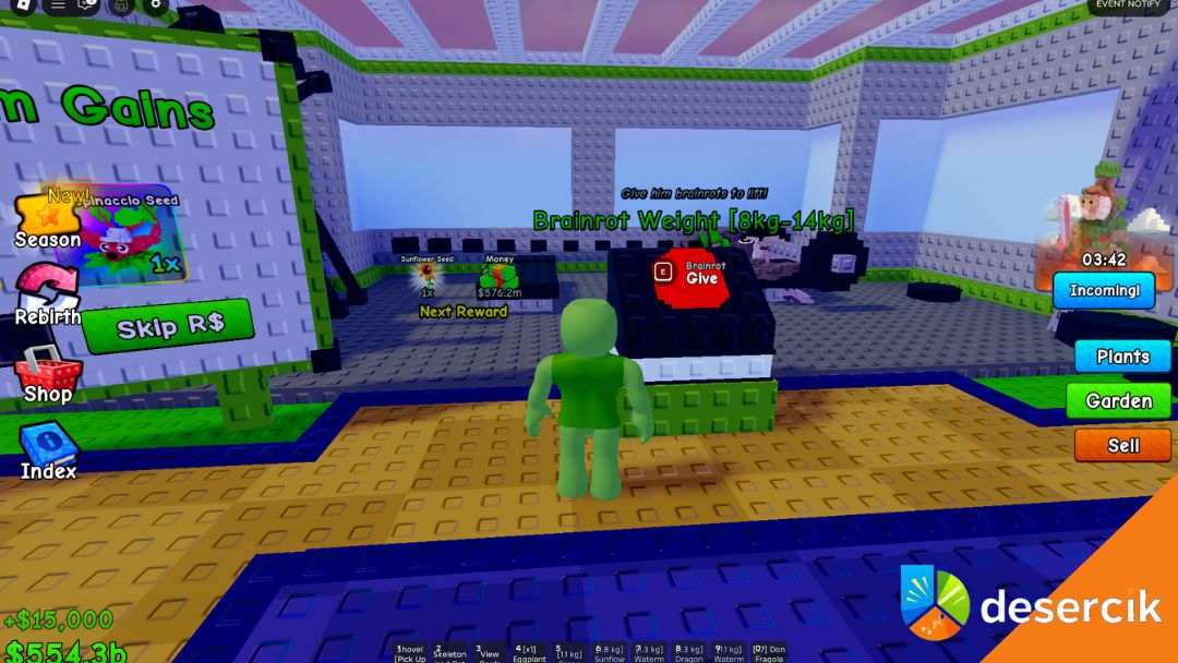 Za oddawanie brainrotów dostajesz pieniądze, karty, nasiona, jajka, boostery, potki i unikalne przedmioty. Nie ma tu losowości – wszystko jest z góry ustalone, więc dokładnie wiesz, po co farmisz.