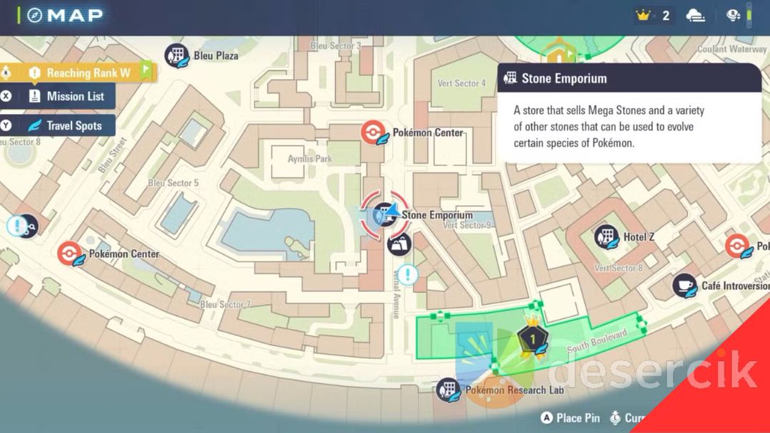 Sklep znajduje się przy Vernal Avenue, na północny zachód od Wild Zone 1 i nieco na zachód od Hotelu Z. Jeśli sklep jest zablokowany, musisz najpierw przejść kilka głównych misji fabularnych (najczęściej misje numer 5–6). Cena kamienia piorunowego to ₽3,000.