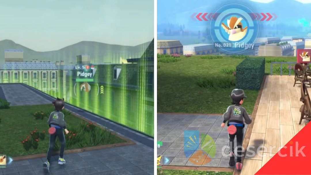 Na koniec mamy Pidgey, klasyczny Flying-type z pierwszej generacji Pokemonów. W pobliżu Mareep, używając Rock Smash na głazach. Następnie wejdź na drabinę przy stawie i przejdź po dachach, by dotrzeć do drugiej drabiny prowadzącej do Pidgey. Obserwuj uważnie teren – dachy kryją też różne przedmioty i mogą ułatwić późniejsze łapanie.
