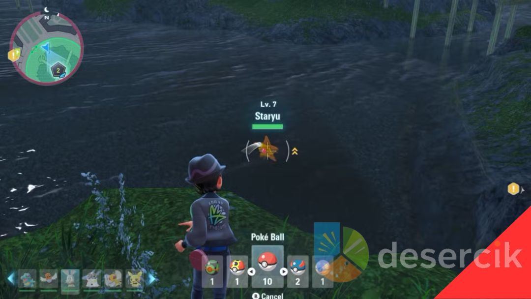 Gdzie szukać: Staryu pojawia się w wodzie tuż za północno-zachodnią bramą Wild Zone 2. Wystarczy wybrać opcję „przebywaj aż do nocy” na ławce, a Pokemon pojawi się w tym miejscu.
