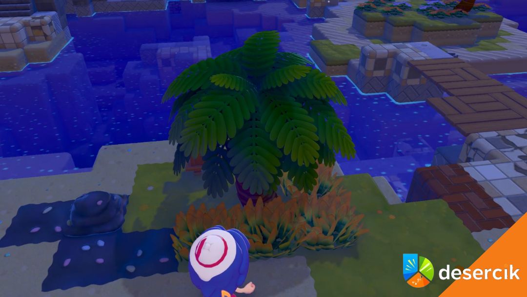 Najpierw znajdź wysokie drzewo otoczone trawą. Następnie użyj umiejętności Water Gun, aby podlać drzewo oraz trawę wokół niego. Kolejnym krokiem jest użycie Leafage, aby stworzyć cztery pola wysokiej żółtej trawy obok drzewa.