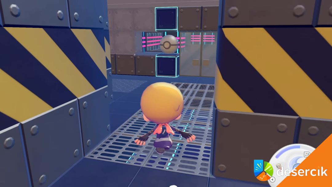 Po drugiej stronie pokoju są schody prowadzące jeszcze niżej. Gdy nimi zejdziesz, zobaczysz szklane drzwi. Za nimi znajduje się sekretna baza Zespołu R, co łatwo poznać po ogromnym symbolu „R” na ścianie.