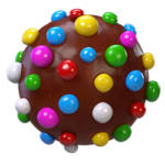 Color Bomb: Tworzy się poprzez dopasowanie pięciu elementów w linii prostej. Dopasuj element z dowolnym cukierkiem, a usunie wszystkie cukierki identyczne z dopasowanym z całej planszy.