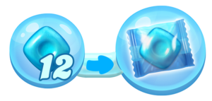 Wrapped Candy: Tworzy się poprzez dopasowanie pięciu elementów w kształcie litery L lub T. Dopasowanie jego do elementów usuwa wszystkie sąsiadujące z nim cukierki w miejscu, gdzie został dopasowany.