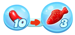 Swedish Fish: Wystarczy dopasować cukierki w kształcie kwadratu 2×2. Dopasowana rybka szuka losowego elementy na planszy, który zostaje przez nią pożarty.