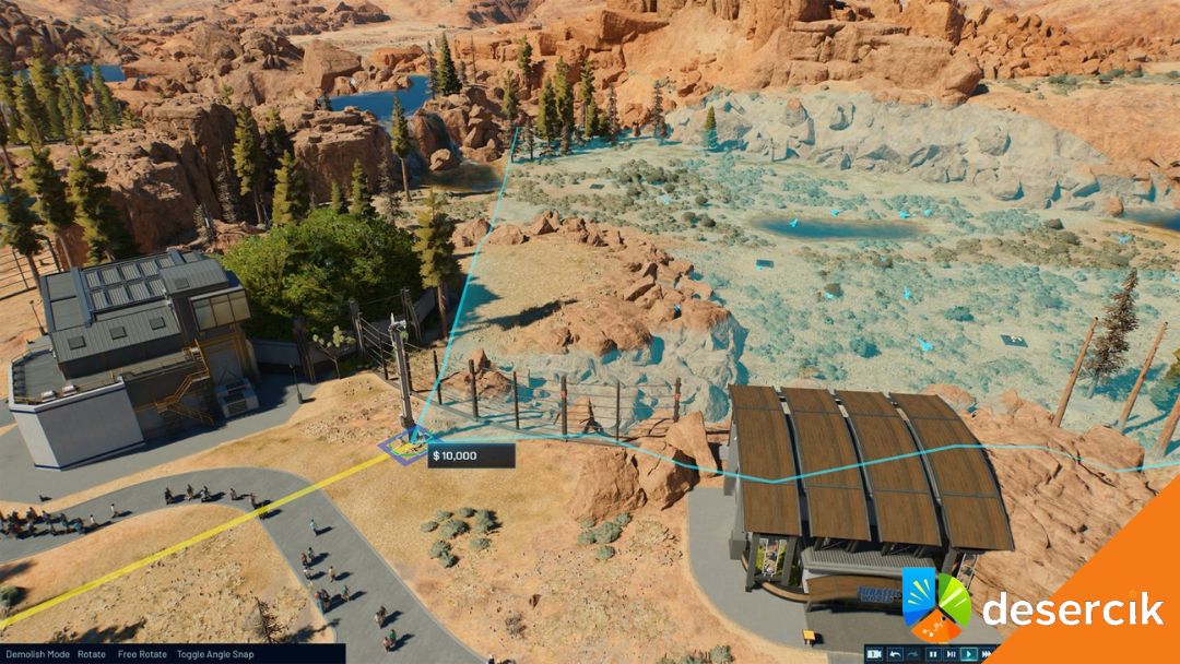 Eksperymentuj z własnymi budynkami, używając funkcji Custom Design – umieszczaj puste moduły podstawowe i dodawaj szczegóły oraz wymagania, które pozwolą parkowi działać sprawnie.