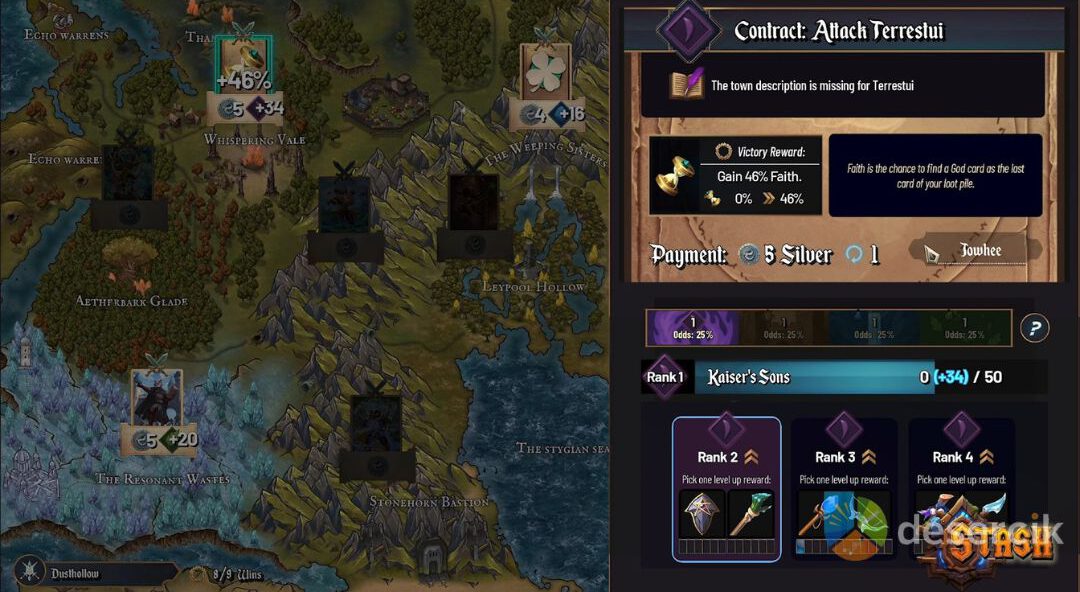 To roguelite autobattler z asymetrycznym trybem wieloosobowym, w którym gracze budują swoją talię, wybierając z losowo generowanych kart przypominających łupy z gier typu ARPG. W talii mogą pojawić się unikalne przedmioty, legendarne karty, a nawet elementy z zestawów tematycznych.