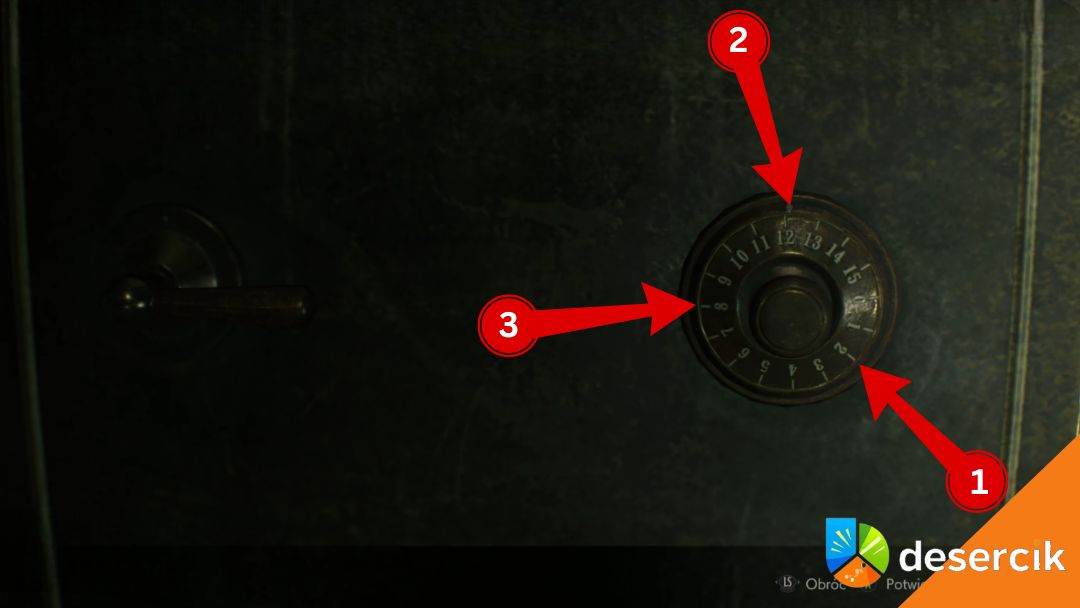 Sejfy: To taki mini-łamigłówkowy patent. Obracasz pokrętłem w lewo i w prawo, wybierając odpowiednie liczby w dokładnie tej kolejności, w jakiej podano kod. Liczy się wszystko – każdy ruch pokrętłem, bo inaczej sejf nie zaskoczy. Trochę jak w starych filmach o napadach, tylko że tu walka toczy się o życie, a nie o banknoty.
