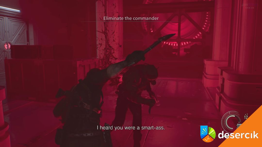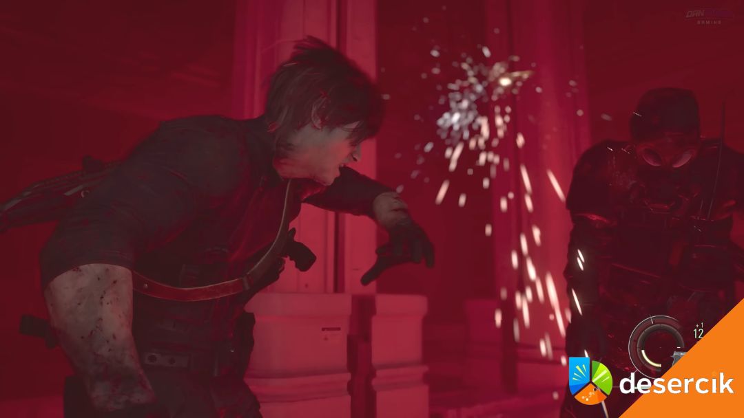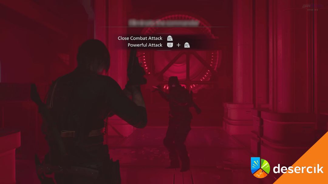 W późniejszej fazie Dowódca może rzucić granat dymny. Widoczność spada praktycznie do zera, a on wykorzystuje zamieszanie, by rzucić się na Leona.