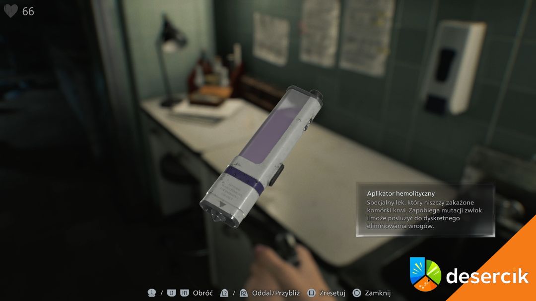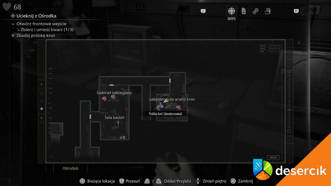 Przełom następuje dopiero w wschodnim skrzydle, kiedy w Sali badań trafiasz na aplikator hemolityczny. Od tego momentu Grace przestaje być tylko ofiarą, a zaczyna realnie kontrolować sytuację.