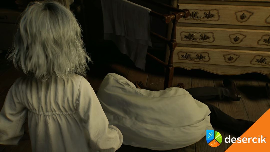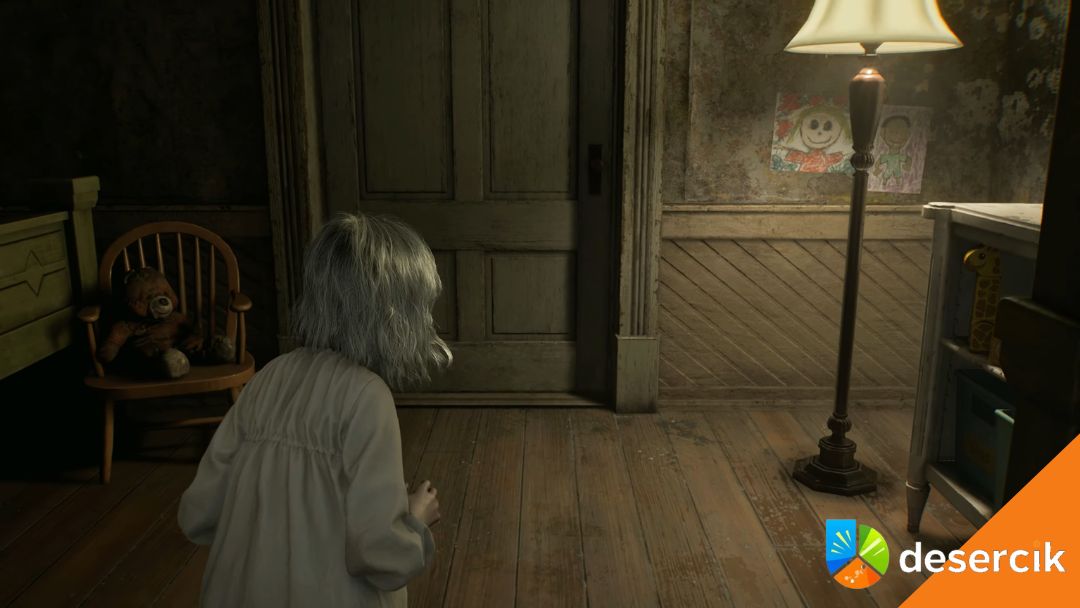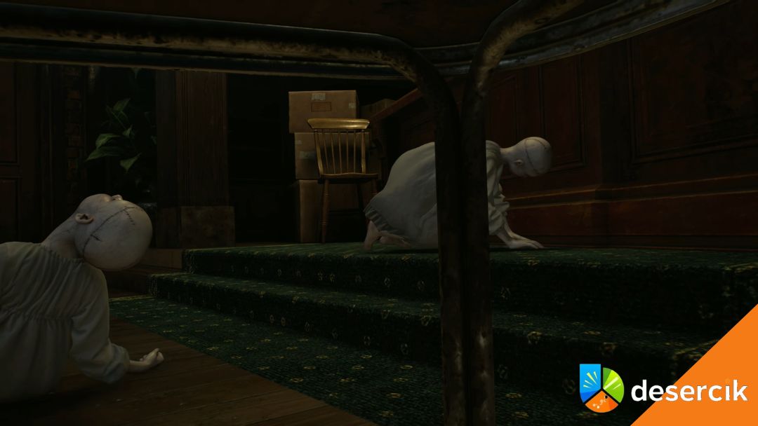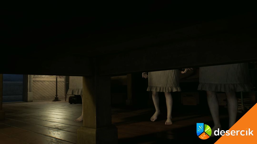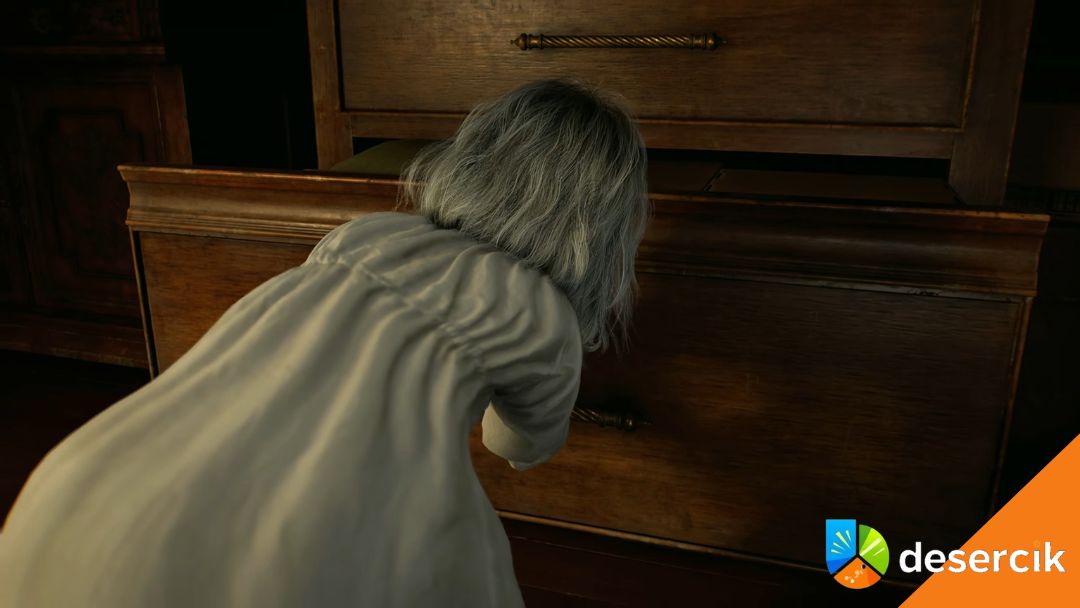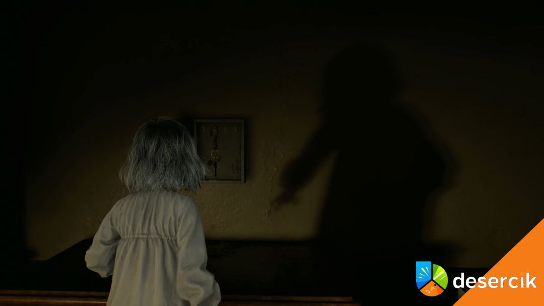 Podczas schodzenia Chloe spadnie i narobi hałasu. To przyciągnie dzieci. Gdy tylko podniesiesz klucz, schowaj się za białymi skrzynkami po prawej stronie komody.