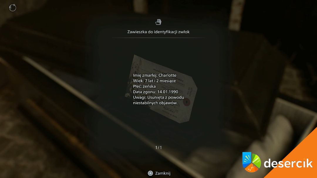 Przy pierwszej trumnie możesz zdobyć plik Zawieszka do identyfikacji zwłok.