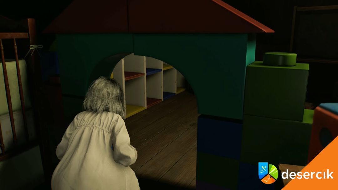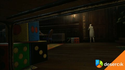 Gdy będzie czysto, wróć do pokoju zabaw z martwymi naukowcami. Przeczołgaj się przez konstrukcję zabawek i zejdź na dół do głównego holu.