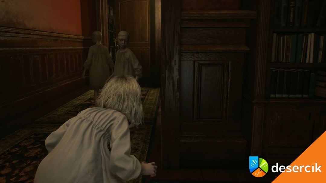 Na końcu korytarza podejdzie do ciebie dwójka dzieci. Gdy tylko cię zauważą i się odwrócą, uciekaj z powrotem do głównego holu i schowaj się pod stolikiem. Wystarczy kilka sekund. Potem możesz wrócić korytarzem do gabinetu dyrektora. Tym razem nikogo tam nie będzie.