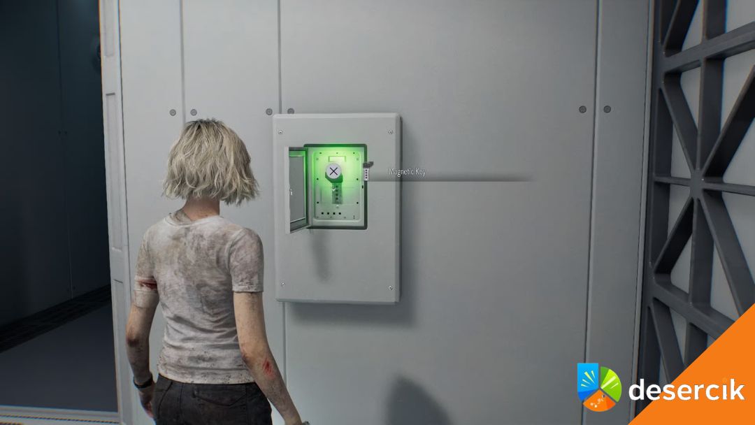 Po aktywacji spójrz na północ, po przeciwnej stronie terminala. Zobaczysz gablotę z przedmiotem w środku. Otwórz szkło i podnieś magnetyczny klucz.