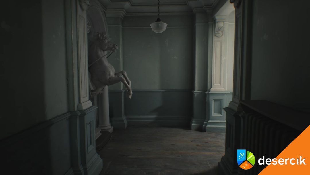 Skręć w prawo i wybierz trzecią ścieżkę. Na jej końcu znajdziesz włącznik światła. Po jego użyciu lampy w korytarzu zaczną migotać i powoli rozświetlą drogę prowadzącą do posągu konia stojącego na końcu przejścia. Ten moment zmienia klimat. Nadal jest niepokojąco, ale przynajmniej widzisz, dokąd idziesz.