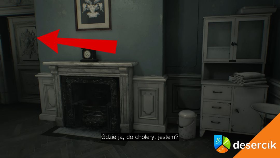 Poświęć chwilę na dokładne sprawdzenie pomieszczenia. Znajdziesz tu drobne elementy fabularne, które subtelnie budują tło wydarzeń i podpowiadają, że to miejsce ma swoją mroczną historię. Dodatkowo na stoliku obok lampy znajdziesz Notatki z Obserwacji. Gdy będziesz gotowy, wyjdź drzwiami po lewej stronie kominka.