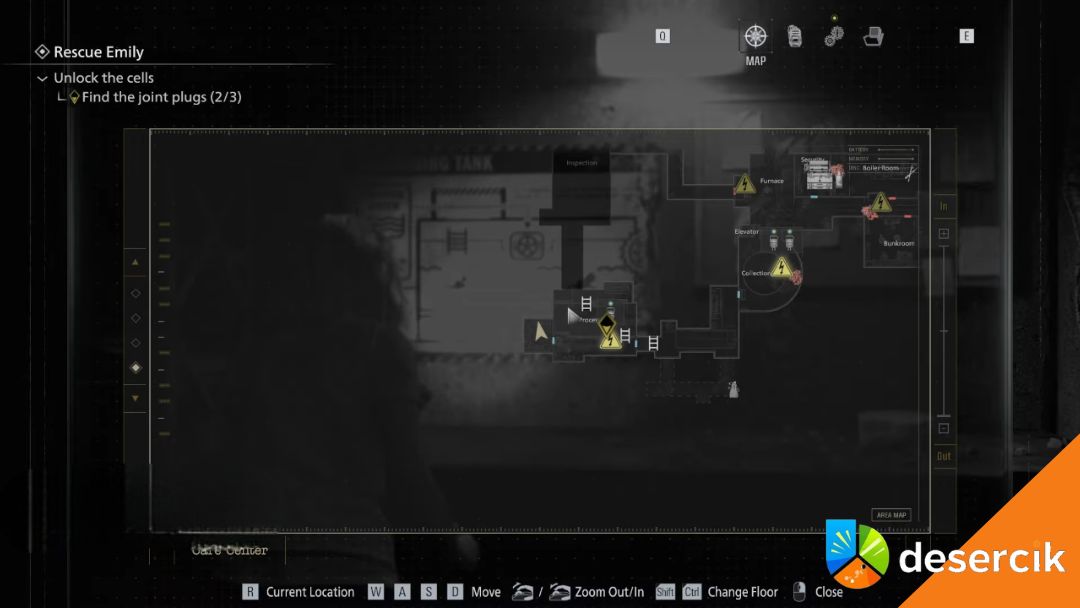 W tym momencie się pojawi dziewczyna, więc trzeba ją wodzić wokół maszyn, aby nie wpadła ci w drogę. Wyjdź z kotłowni tym samym wejściem, zabierając ze sobą joint plug.