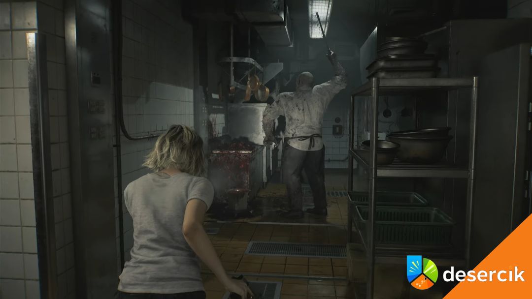 W kuchni spotkasz potężnego zainfekowanego kucharza. I tu ważna rzecz – nie próbuj go zabijać. Rewolwer Requiem go nie położy. Dwa mocne ciosy tasakiem i koniec.