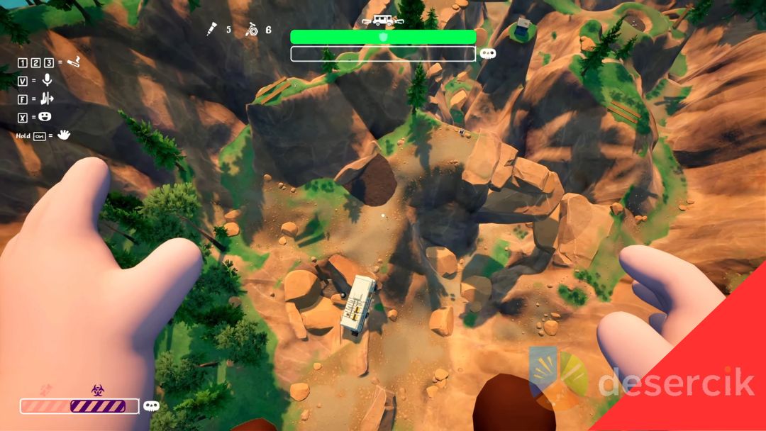 Jeśli mimo wszystko orzeł cię porwie, niestety niewiele da się zrobić – musisz czekać, aż cię puści, co zazwyczaj kończy się upadkiem i śmiercią postaci. Na szczęście w RV There Yet? istnieją punkty respawnu, a w trybie kooperacji twoi znajomi mogą cię szybko wskrzeszać, dzięki czemu nie tracisz całej przygody i możesz od razu wrócić do akcji.
