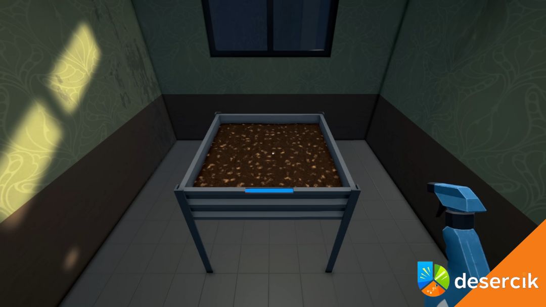 - Otwórz igłę, używając klawiszy A i D, wbij ją w czarny kwadrat na worku i naciśnij tłok, aby uwolnić zarodniki.
