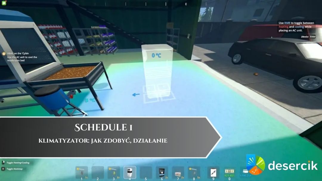 Aktualizacja Shrooms Update mocno rozbudowała świat Schedule 1. Doszły nowe przedmioty, narkotyki i sprzęt do uprawy, a jednym z najważniejszych elementów całego systemu jest klimatyzator (AC Unit), czyli duża biała jednostka klimatyzacyjna. To właśnie ona odpowiada za kontrolę temperatury podczas hodowli shroomsów i w praktyce decyduje o tym, czy twoja partia przetrwa, czy pójdzie do kosza.